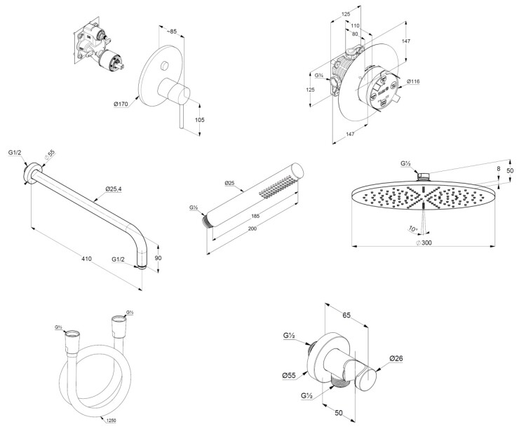 Комплект KLUDI BOZZ 386585376 душевой 7 в 1 верхний душ 300 мм 1