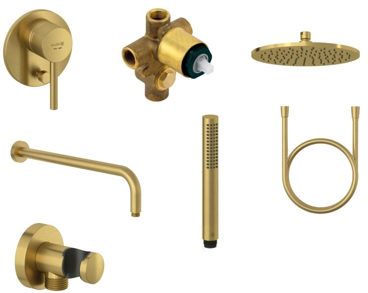 Душевой комплект Kludi Bozz 38736N076 со смесителем брашированное золото купить
