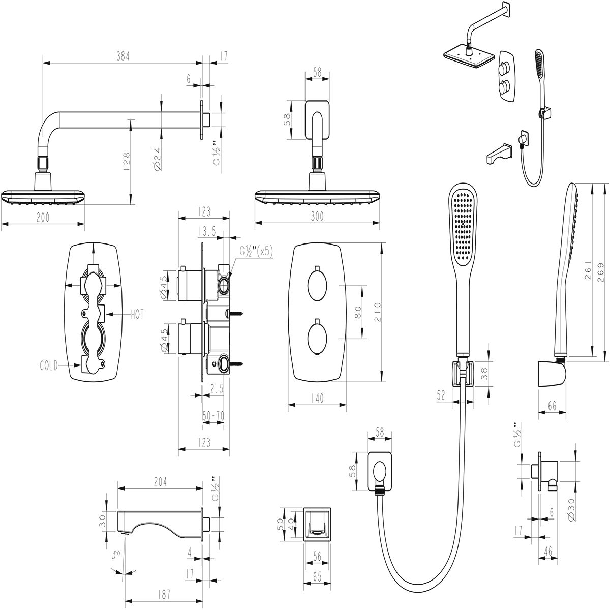 • Душевой шланг 2 м