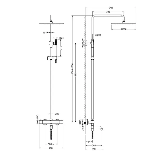 • Штанга душевой системы: регулируется по высоте