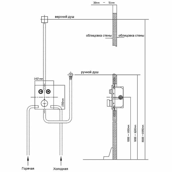 В комплекте поставки:Смеситель для душа (внешняя и внутренняя часть).