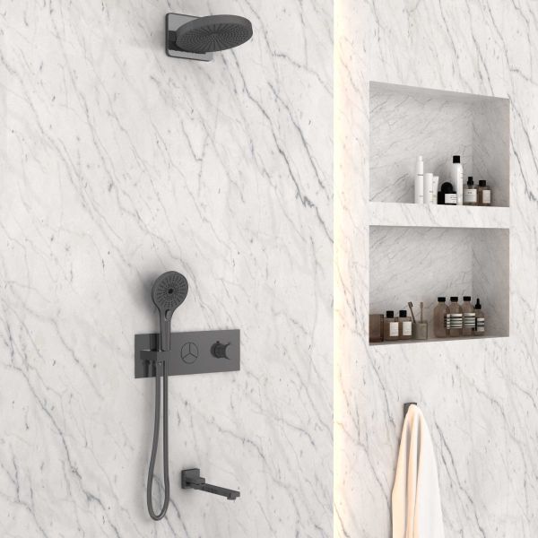 Душевой комплект Vincea VSFW-432TI1GM встраиваемый, трехрежимный, вороненая сталь