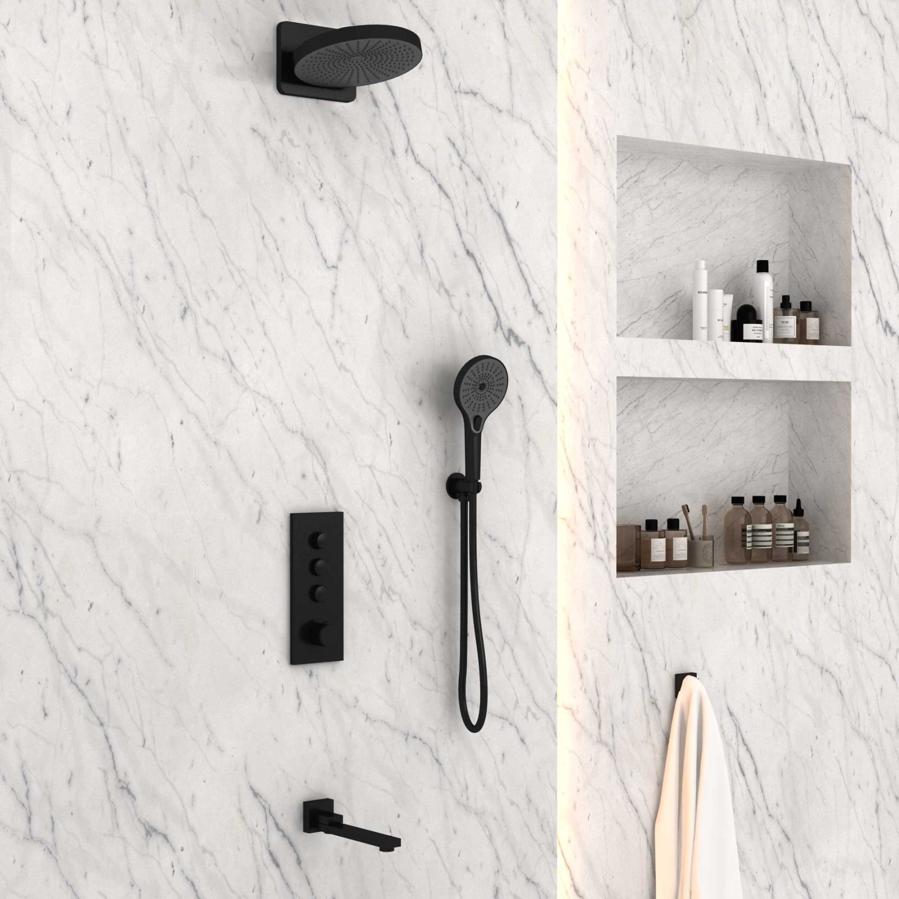 Душевой комплект Vincea VSFW-433TI1MB встраиваемый, термостатический, трехрежимный, черный купить
