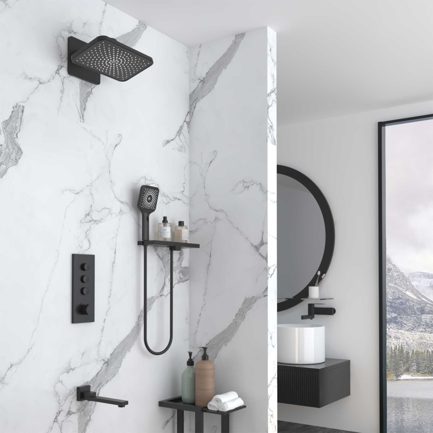 Душевой комплект Vincea VSFW-433TI4RMB встраиваемый, термостатический, трехрежимный, черный купить