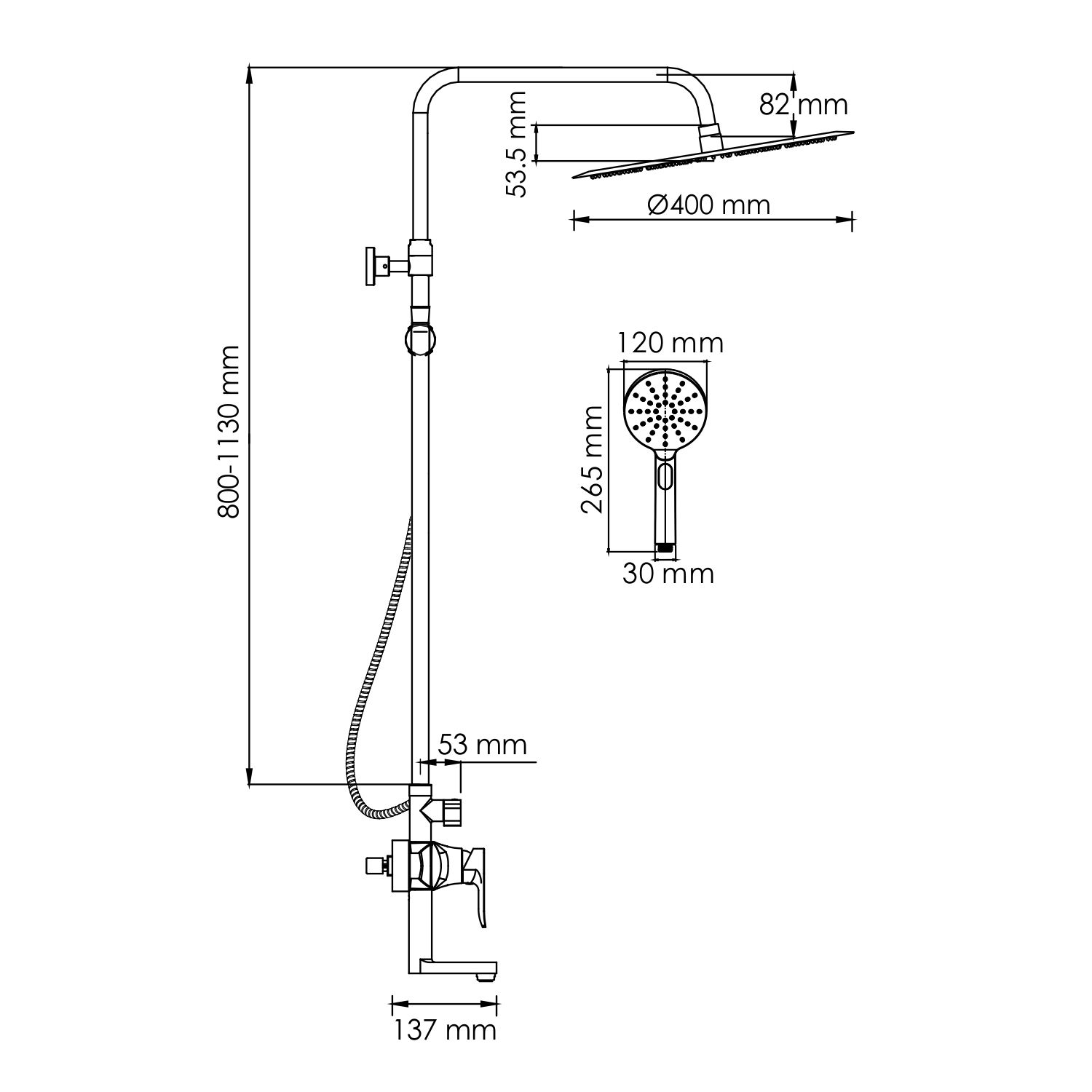 • Размер верхнего душа, см: