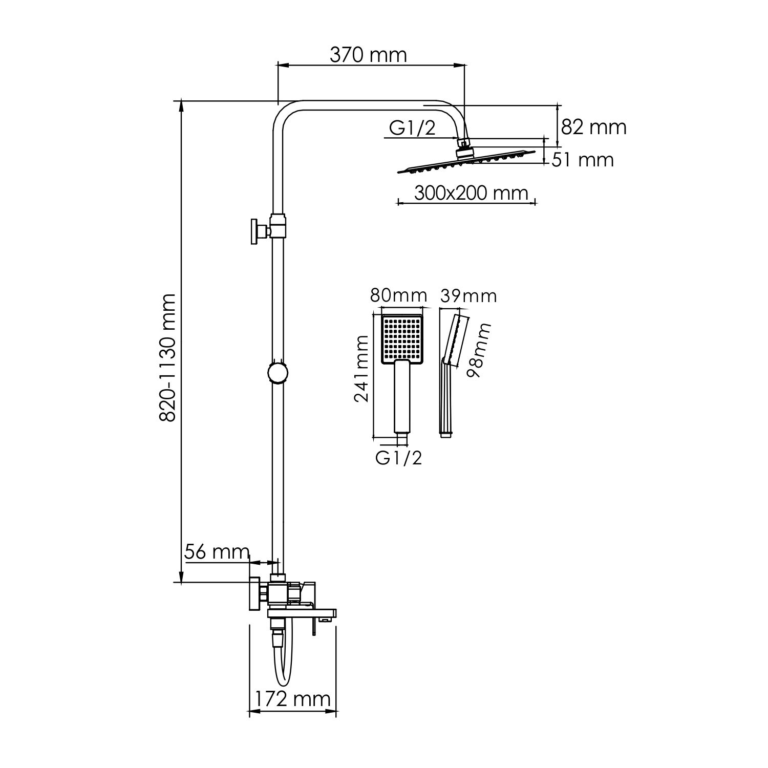 Стойка для душа, Ø 22 мм регулируемая по высоте