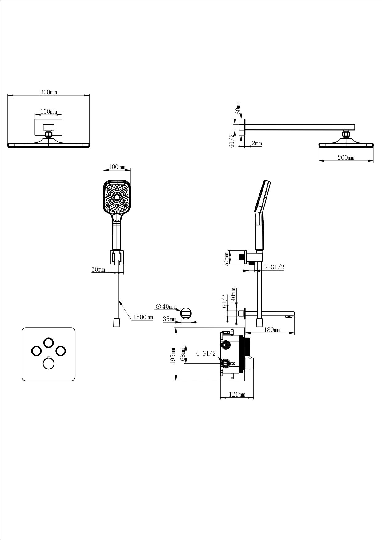• Размер верхнего душа, см: