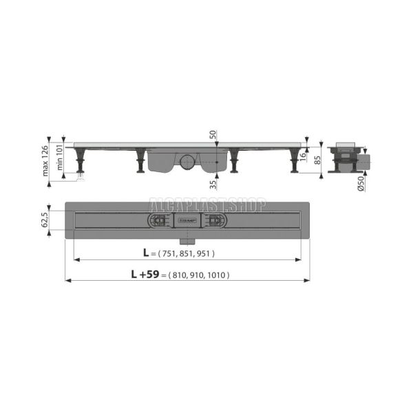 Душевой лоток AlcaPlast с порогами для перфорированной решетки без гидрозатвора 95см хром APZ22-950