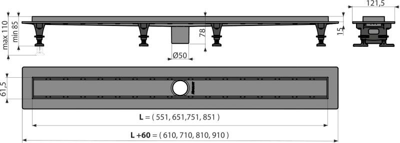 Душевой лоток AlcaPlast с порогами из нержавеющей стали для перфорированной решетки или решетки под кладку плитки без гидрозатвора 75см хром APZ2012-750 купить