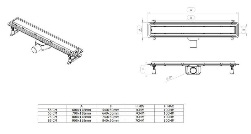 Душевой лоток Allen Brau Infinity 9.50006.SS для поддона 850 мм нержавеющая стальКласс нагрузки K=300 кг