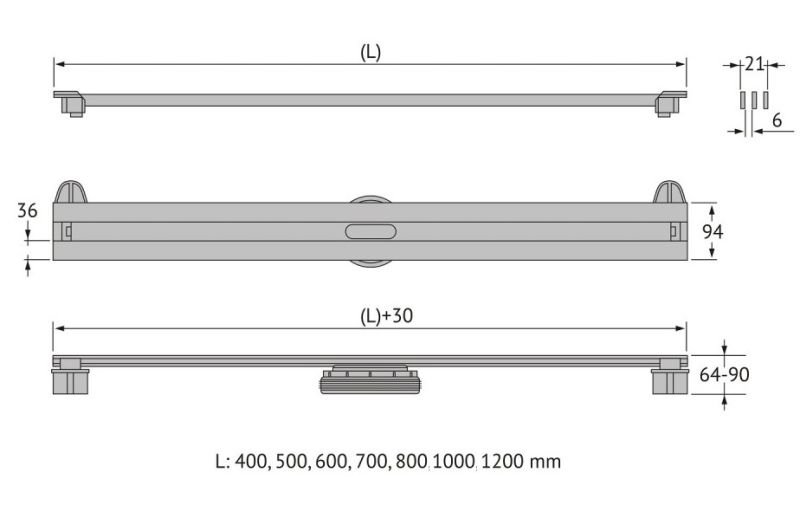 Решетка и декоративные заглушки, нержавеющая сталь AISI 304Комплект регулировки решетки по высоте от 8 до 25 ммСетка для волос, пластикКомплект гидроизоляцииЖелоб водосток, нержавеющая сталь AISI 304Монтажная заглушка, пенопластРегулируемые по высоте ножки, пластикСамопромывной S-образный сифон PP:Вертикальный выпуск пропускная способность 42 л/мин, монтаж 360°Монтажный ключ, пластик