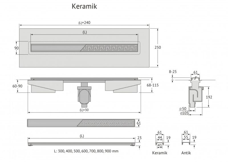 Душевой желоб Berges В1 Keramik это современное функциональное решение для оборудования водоотвода во внутренних помещениях. Выполнен из высококачественной нержавеющей стали AISI 304, что обеспечивает жесткую фиксацию в основании пола и длительное использование.Изоляционная мембрана, интегрированная в стальной корпус, гарантирует непроницаемость и совместима со всеми изоляционными материалами.Усовершенствованная система настройки высоты изделия позволяет выполнить легкую регулировку под заданную толщину покрытия, с минимальной высотой монтажа (заливки) - 65мм. Поворотный сифон с гидрозатвором имеет высокую пропускную способность 48 л/мин и оригинальную самопромывную конструкцию.Наличие съемной стальной рамки обеспечивает эстетичный внешний вид с минимальными зазорами, возможность легкого переворота решетки, а также отсутствие влаги в местах примыкания.Съемная сетка для волос (грязеуловитель) предотвращает попадание мусора в сифон и позволяет легко проводить очистку желоба. Благодаря возможности переворота решетки и вклейки плитки, вы ощутите цельность пространства в вашей ванной комнате и душевой.