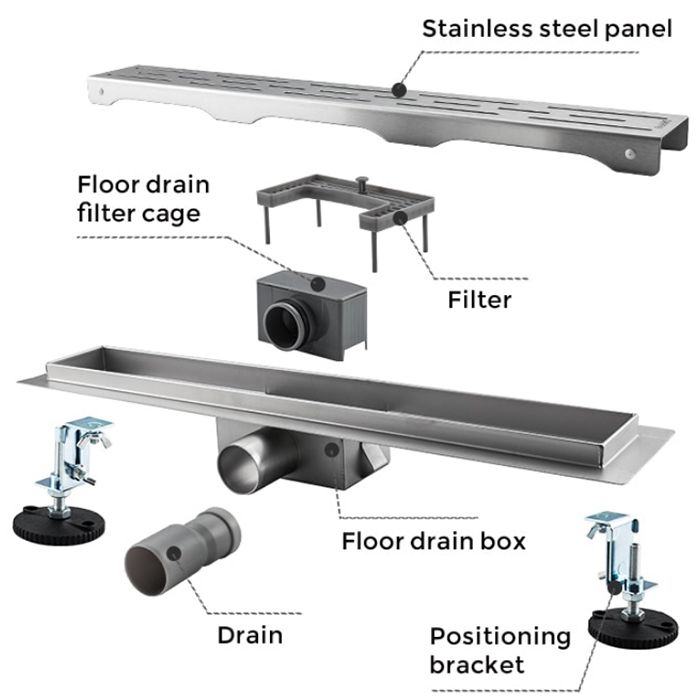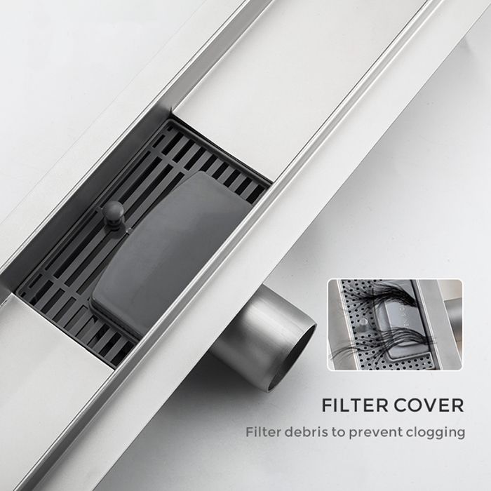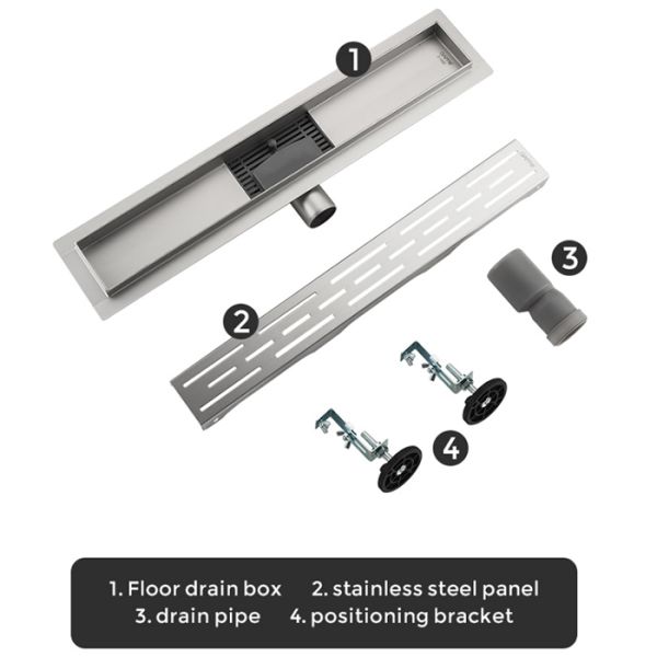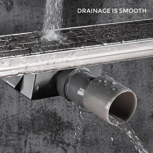 Линейный трап с большой просечкой Gappo G85007-1, цвет сатин, длина 50 см, изготовлен трап из нержавеющей стали. Минимальная монтажная высота 85 мм, боковой выпуск 40 мм, в комплекте переходник на 50 мм. Защита от запаха: комбинированный гидрозатвор, защита от проникновения запаха и жидкости из канализации.