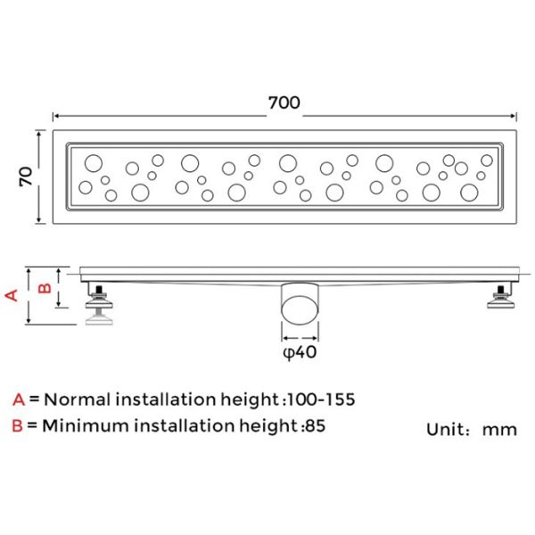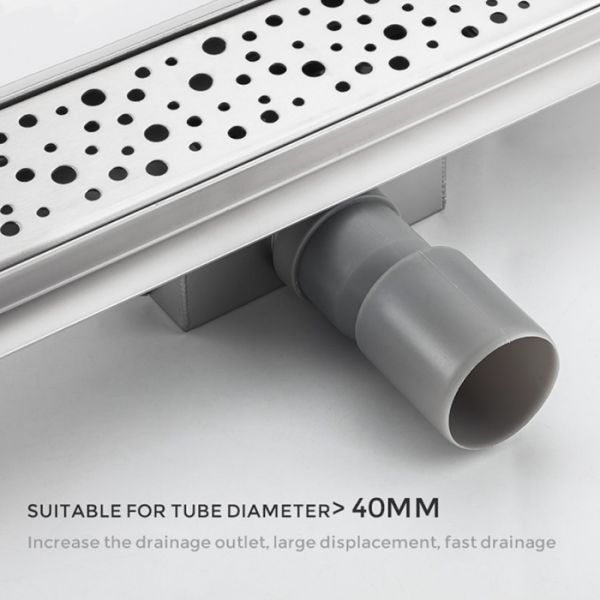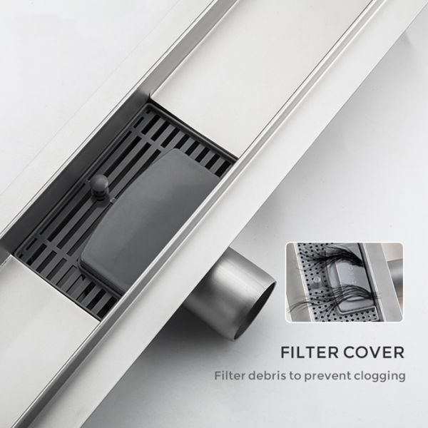 Линейный трап для душа Gappo G87007-2, длина 70 см, цвет сатин, изготовлен трап из нержавеющей стали. Минимальная монтажная высота 85 мм, боковой выпуск 40 мм, в комплекте переходник на 50 мм. Защита от запаха: комбинированный гидрозатвор, защита от проникновения запаха и жидкости из канализации.