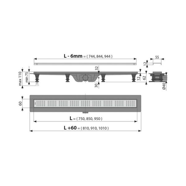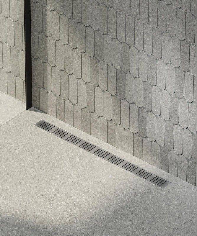 Душевой лоток с двусторонней решеткой из нержавеющей стали используется для отвода воды из душевой зоны с безбарьерным доступом. Решётку можно установить двумя способами: в первом случае сверху — полоса из цельной нержавеющей стали, во втором — закреплённая на решётке плитка или мозаика толщиной до 12 мм. Водоотводящий жёлоб выполнен из нержавеющей стали, прошедшей электрохимическую обработку. Комбинированный гидрозатвор обеспечивает надежную защиту от проникновения запаха. Высота монтажа до 81 мм. Регулируемые монтажные ножки позволяют быстро и удобно установить желоб и выровнять его по горизонтали.