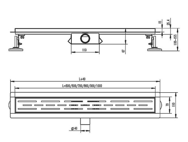 Трап изготовлен из высококачественной нержавеющей стали, в коллекции цвета трапа представлены в нескольких вариантах - черный матовый и сатиновый. Линейный трап под кладку плитки для душа предназначен для отвода воды с пола или поддона под душем. Широкий диапазон регулировки по высоте позволяет устанавливать трап в новых ванных комнатах. Индивидуально регулируемые ножки обеспечивают беспроблемную установку, даже в тех случаях, когда Вы сталкиваетесь со значительными неровностями в различных частях монтажной поверхности. Трап обеспечивает свободный слив воды в канализационную систему, также собирая мусор, не давая ему засорять сливные каналы. Принцип работы сухого затвора: легкий поплавок диаметром больше сливного отверстия опускается и закрывает трубу в случае высыхания воды. В рабочем положении вода поднимает и удерживает поплавок на одном уровне и система работает, как один из вариантов гидрозатвора. Если трап не используется, то вода из затвора испаряется, а поплавок закрывает сливное отверстие. Выпуск: горизонтальный. Материал корпуса: нержавеющая сталь. Защита от запаха: сухой+гидрозатвор.