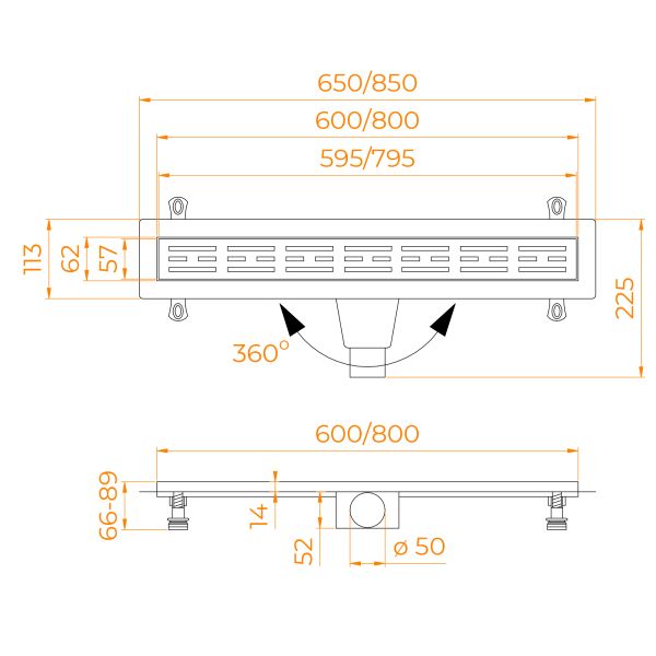 Душевой трап Leo-20 – это сантехническое изделие, созданное для отведения воды из зоны, душевого пространства, выложенное керамической плиткой или мозаикой. Модельный ряд представлен в двух вариантах длины: 60 и 80 см. Трап укомплектован комбинированным затвором гидро+сухой затвор, такая конструкция позволяет на 100% исключить проникновение неприятного запаха в ванную комнату. Решётка выполнена из нержавеющей стали AISI 304, а лоток выполнен из высокопрочного ABS-пластика, такая конструкция обеспечивает максимальную надёжность конструкции более 10 лет. Для эффективного стока воды лоток трапа имеет технический уклон, а для улавливания крупного мусора и волос в конструкцию входит съёмный фильтр-сетка, с помощью которого трап с лёгкостью очищается. В комплектации присутствуют ножки с регулировкой высоты, что позволит с лёгкостью произвести монтаж трапа в пол. Нижний сифон имеет поворотное основание, что позволит подвести сливную трубу с любой стороны. Пропускная способность 42 л/мин.