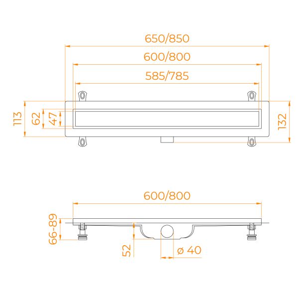 - Небольшая монтажная высота (52 мм), регулируемые ножки (52-70 мм) и наличие гидроизоляционной ленты, такая комплектация значительно ускоряет процесс монтажа.