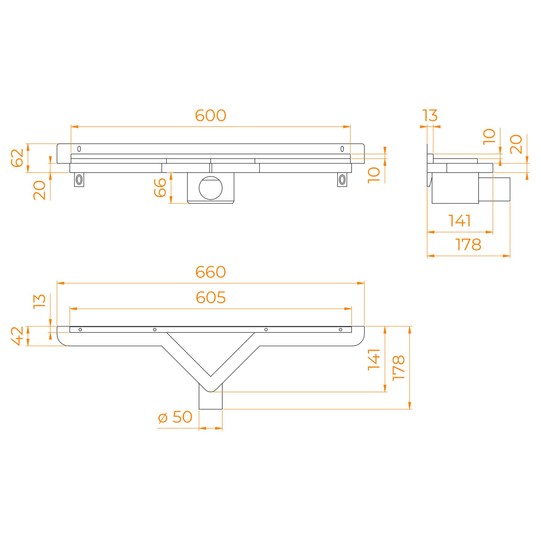 - Быстрый доступ к очистки трапа в отличии от других «скрытых» дренажных систем;