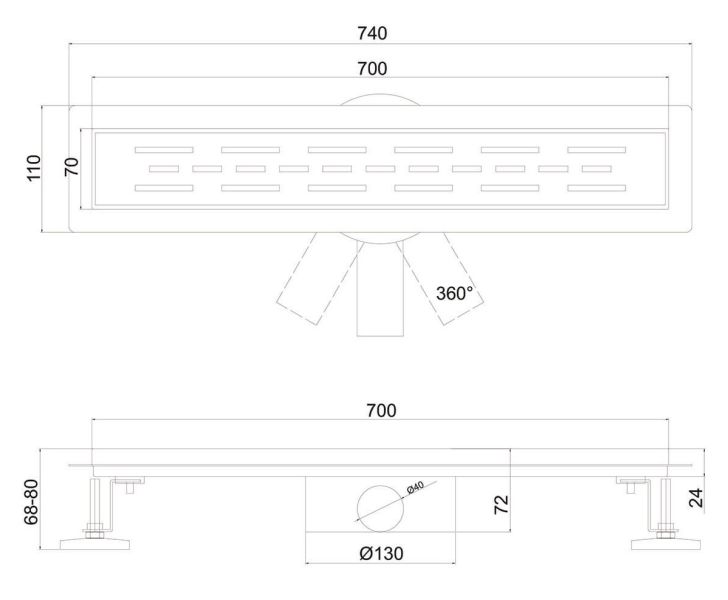 Душевой лоток РМС ТЛ-02-70х7 70см нержавеющая сталь купить