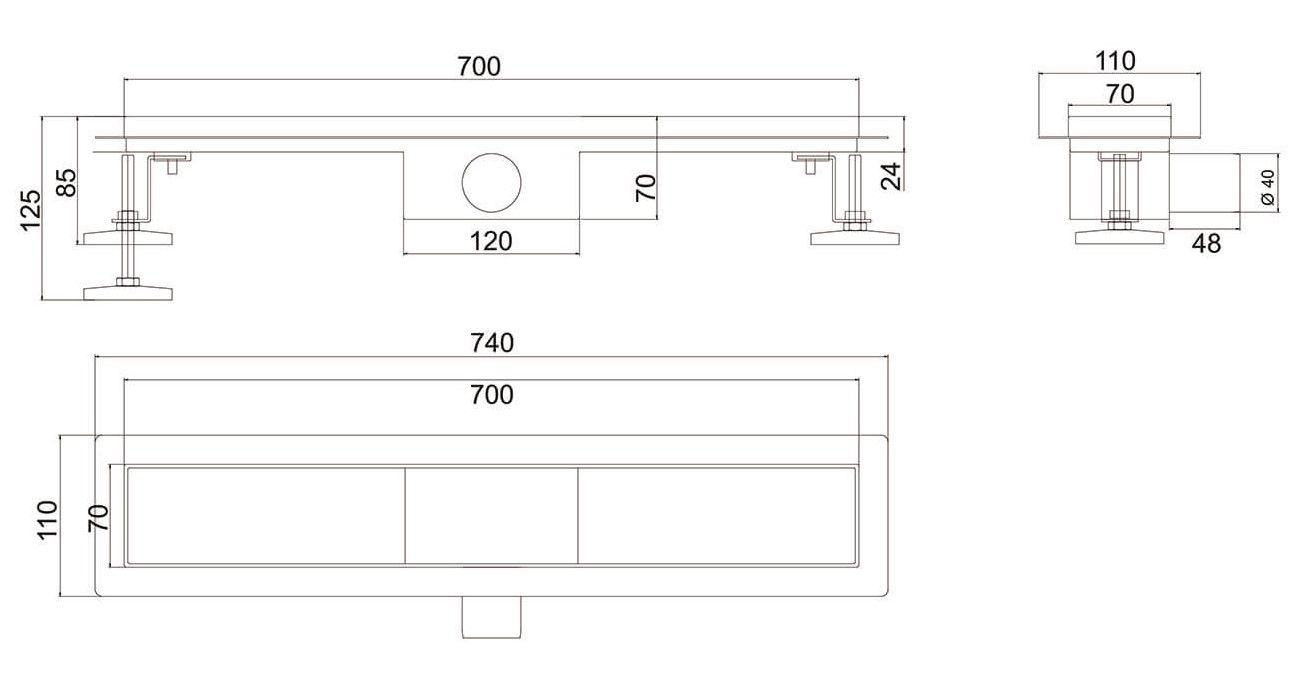 Душевой лоток РМС ТЛ-04-70х7 70см нержавеющая сталь купить