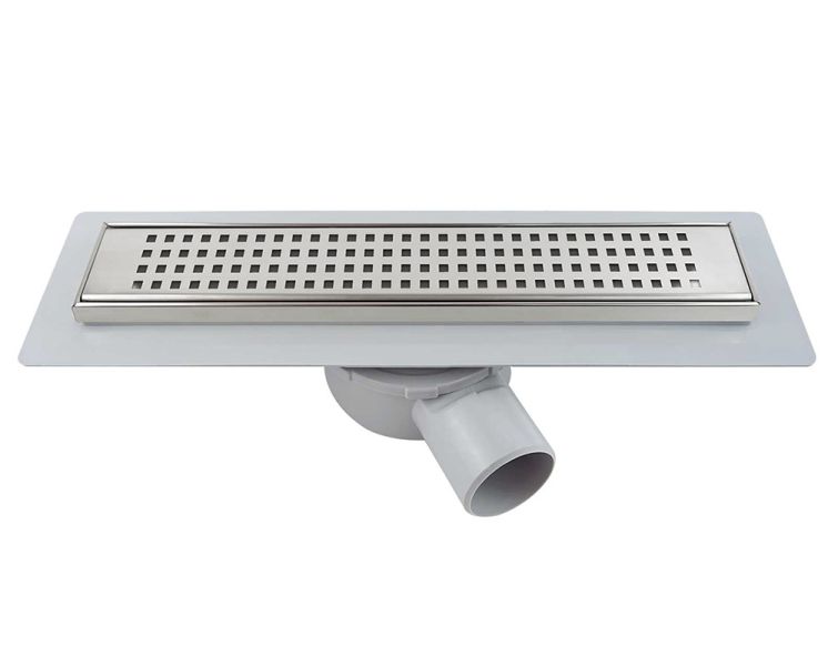Комплектация: поворотный сифон 360 градусов из ABS-пластика, дренажный канал из ABS-пластика, водонепроницаемые уплотнительные кольца, решетка и рамка из нержавеющей стали 1 мм, противозапаховый затвор, водонепроницаемая мембрана, пластиковый сервисный ключ, комплект регулируемых по высоте опор