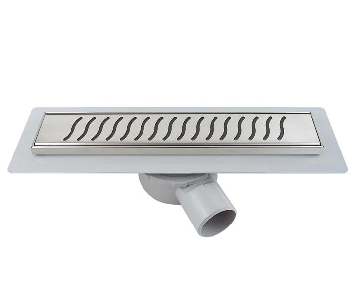 Комплектация: поворотный сифон 360 градусов из ABS-пластика, дренажный канал из ABS-пластика, водонепроницаемые уплотнительные кольца, решетка и рамка из нержавеющей стали 1 мм, противозапаховый затвор, водонепроницаемая мембрана, пластиковый сервисный ключ, комплект регулируемых по высоте опор