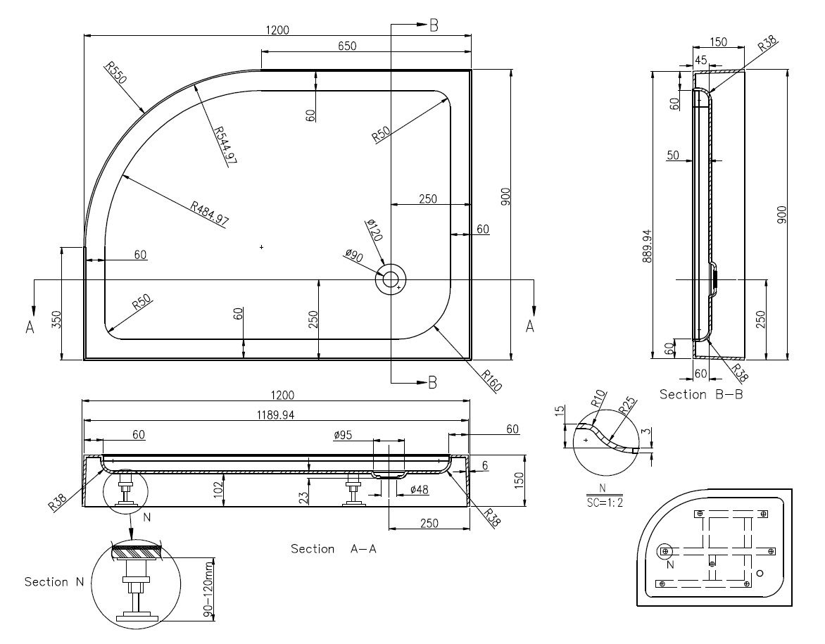 Душевой поддон Azario VICTORIA P2912 R