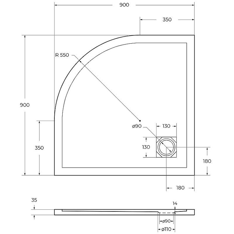 Артикул: TRAY-MR-UNO-R-90-550-35-NERO-CR