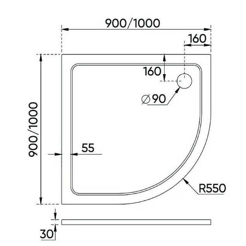 Диаметр сливного отверстия: 90 мм.