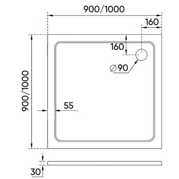 Диаметр сливного отверстия: 90 мм.