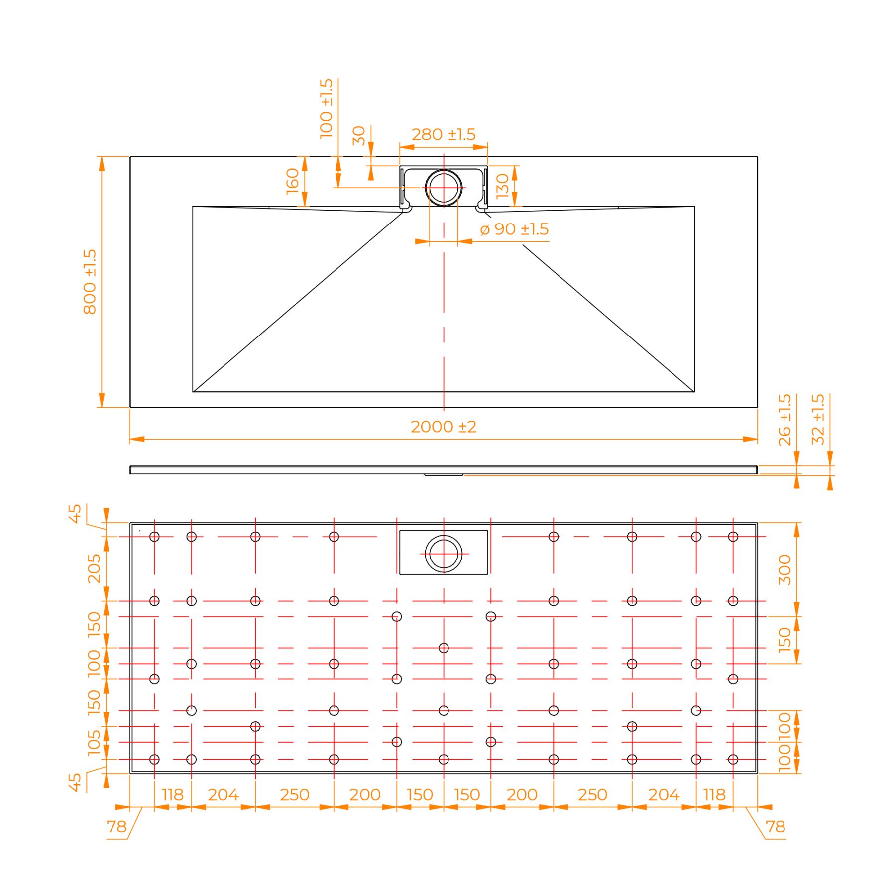 • Общая высота поддона: 26 мм.;