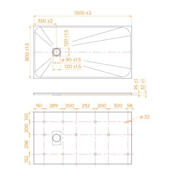 • Общая высота поддона: 26 мм.;