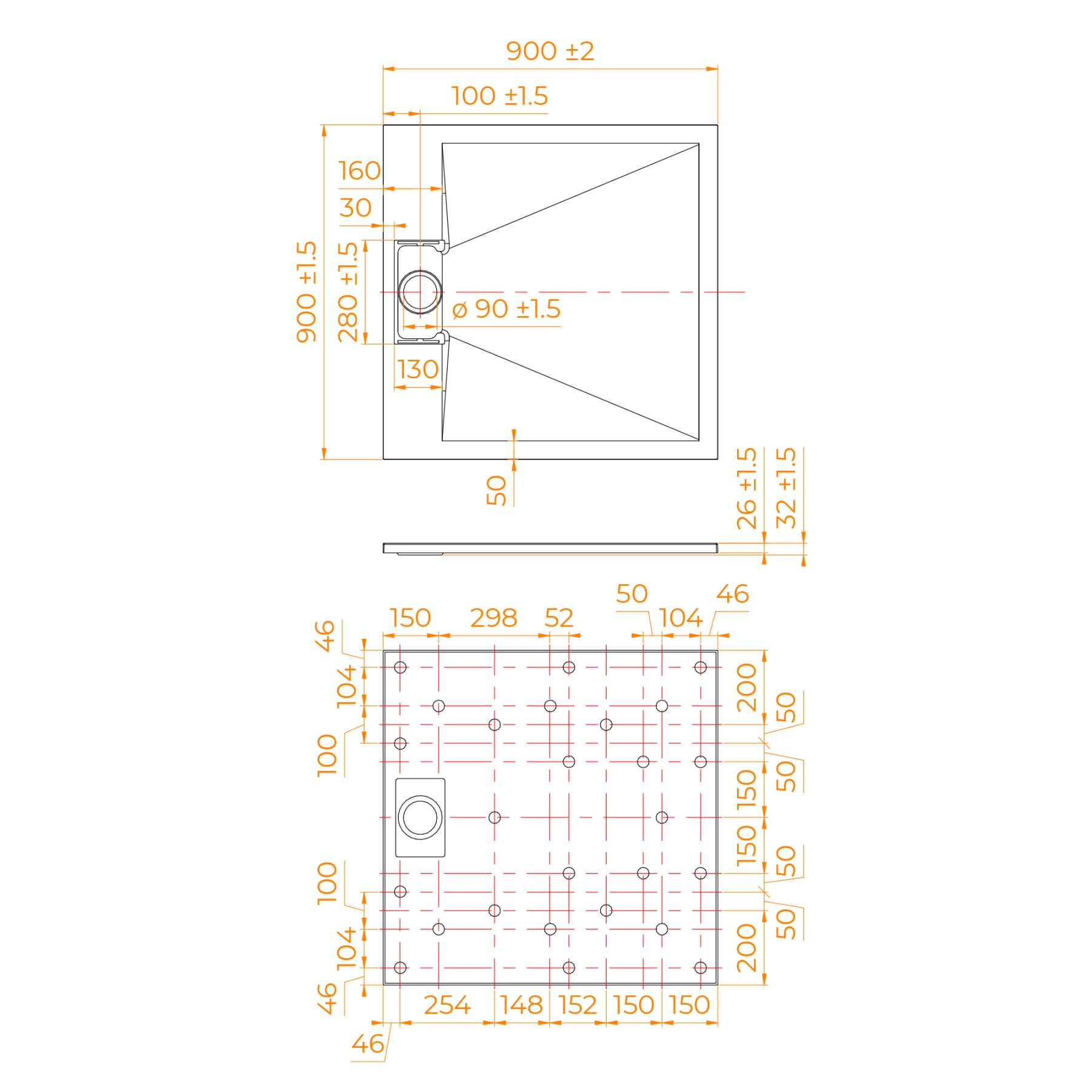 • Общая высота поддона: 26 мм.;