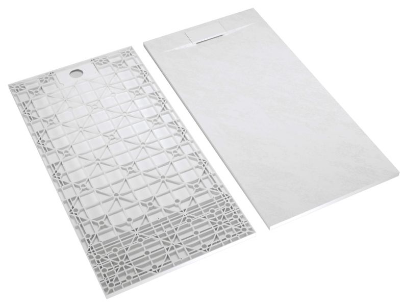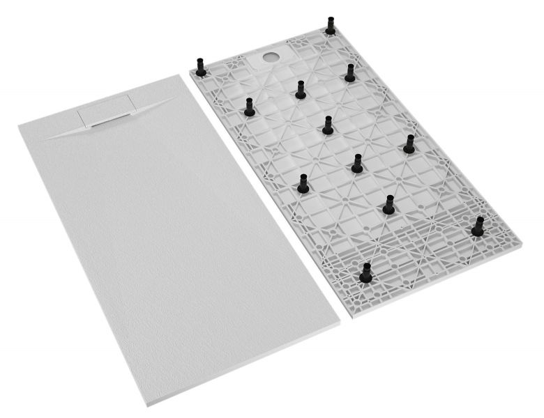Материал исполнения SMC - стеклопластик или стеклокомпозит.Поддоны производятся на сложнейшем оборудовании под воздействием большого давления и высокой температуры.В результате получаются изделия по твердости поверхности не уступающие закалённому стеклу, а волокнистая структура материала и специальная конструкция поддонов позволяет выдерживать значительные механические нагрузки.Низкая теплопроводность материала, такая же как у дерева, позволяет поддерживать комфортную температуру поверхности поддона в процессе использования.