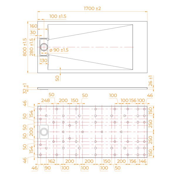 • Общая высота поддона: 26 мм.;