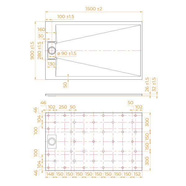 • Общая высота поддона: 26 мм.;