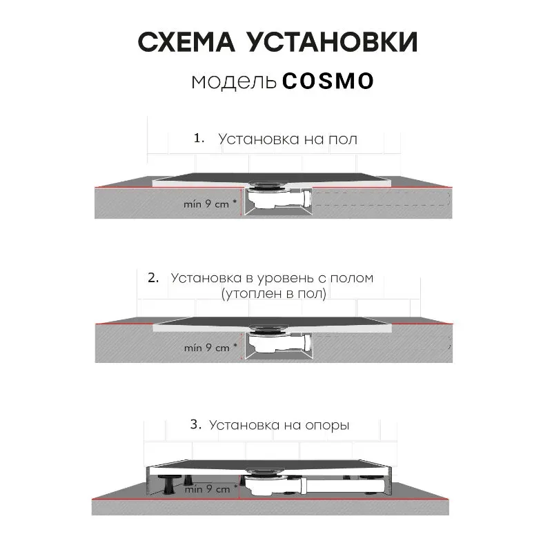 Душевые поддоны COSMO производятся на современном европейском оборудовании для европейского рынка. Контроль качества осуществляется на всех этапах производства. Нескользящая поверхность Antislip. Поверхность с имитацией сланца. Прочный (выдерживает вес свыше 300 кг). Высокая износостойкость. Стойкий к перепадам температур. Стойкий к воздействию химических веществ. Устойчивый к загрязнениям. Не меняет цвет от времени. Экологически нейтральный материал. Теплый на ощупь, приятный тактильный эффект. Хорошее шумопоглощение (в отличие от стали и акрила). Легко моется с использованием бытовых моющих средств. Возможность подрезки под индивидуальный размер. Гарантия 3 года.