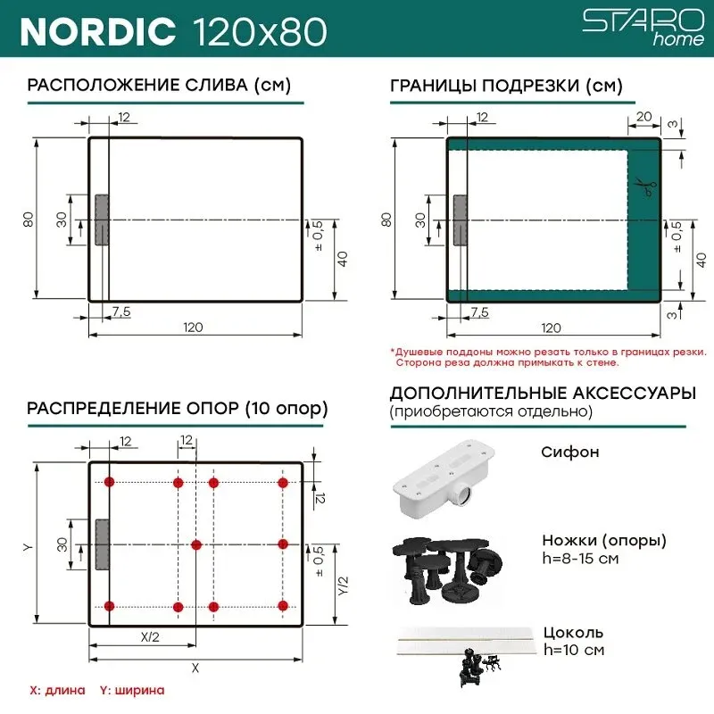 Душевой поддон Starohome NORDIC 20153983 120х80 см Подробнее