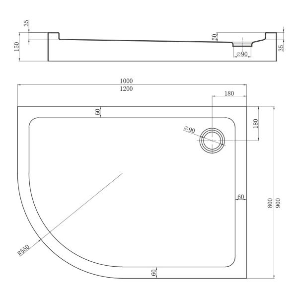 Душевой поддон Veconi Tezeo Acrylic TZ-55R, 1200x800x150, акрил, белый купить