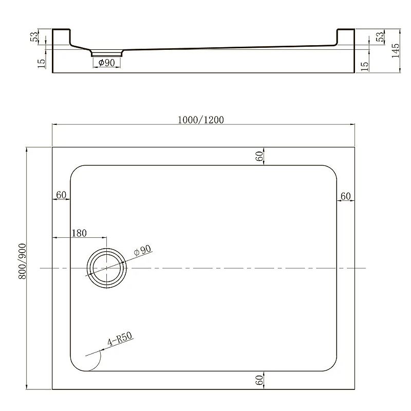 Душевой поддон прямоугольный Veconi Tezeo Acrylic TZ-54B, 1000x800x150, акрил, черный