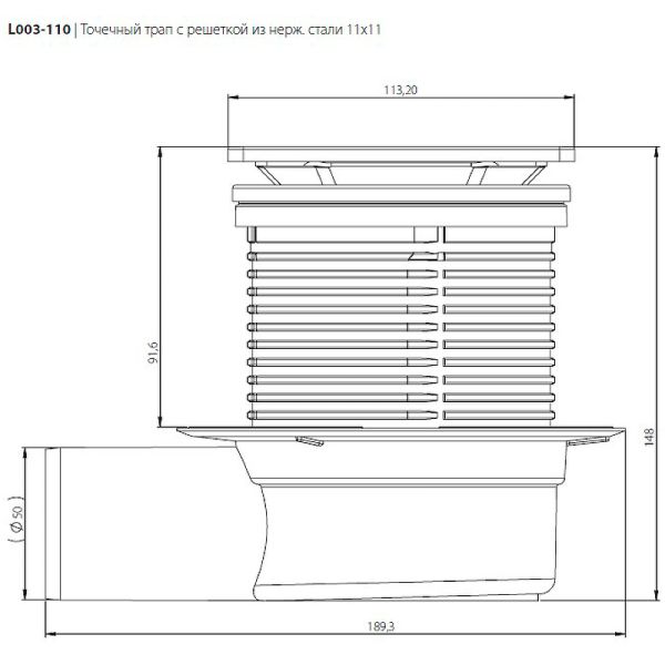 Душевой трап Logan L003-110 с решеткой Нержавеющая сталь