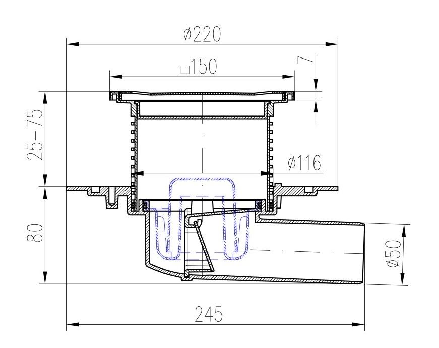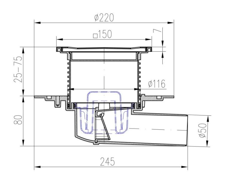 Компактный размер трапа – всего 150х150 мм, что позволяет оставить целостным дизайн пола.