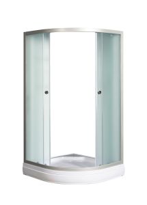 Типы и размеры:без поддона 80*80*176с поддоном 80*80*191Матовое стекло, профиль матовый хромДушевое ограждение для ванной комнаты полукруглое с боковым профилем и роликами.