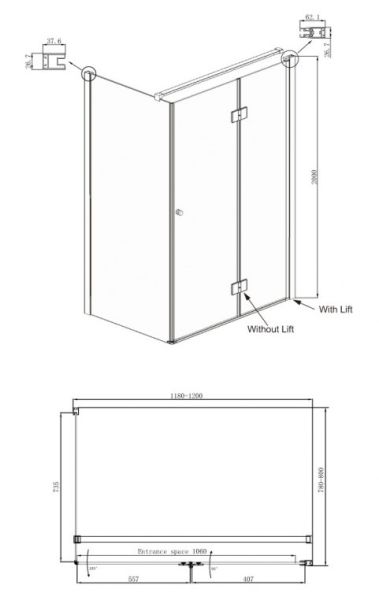 • Ширина входа: распашная часть 55.7 см, складная часть 106 см