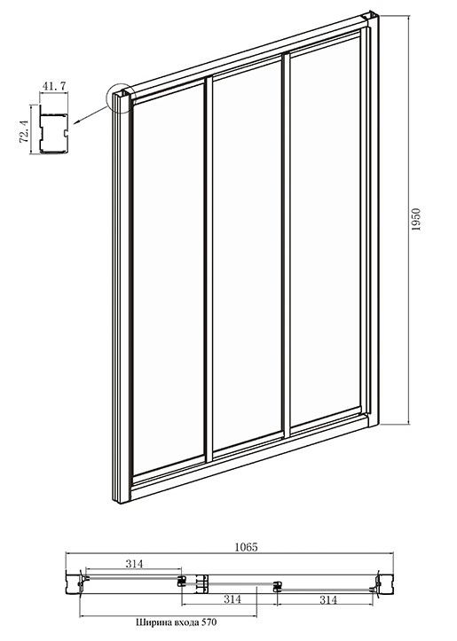 • Конструкция дверей: раздвижная