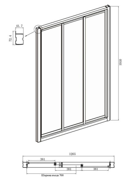 • Конструкция дверей: раздвижная