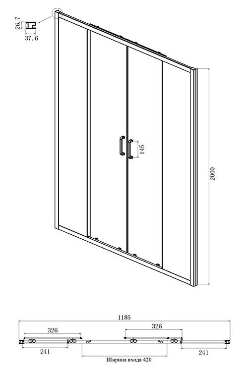 - Ширина входа: 42 см