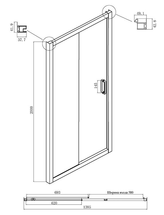 • Конструкция дверей: раздвижная