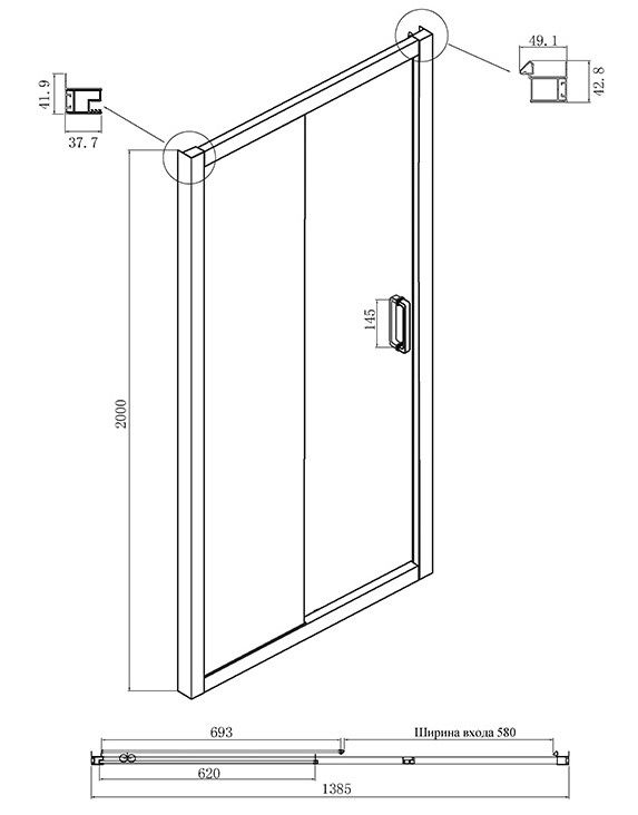 Душевой уголок Ambassador Forsa 17021120AX-90AX 140x90см хром/прозрачное